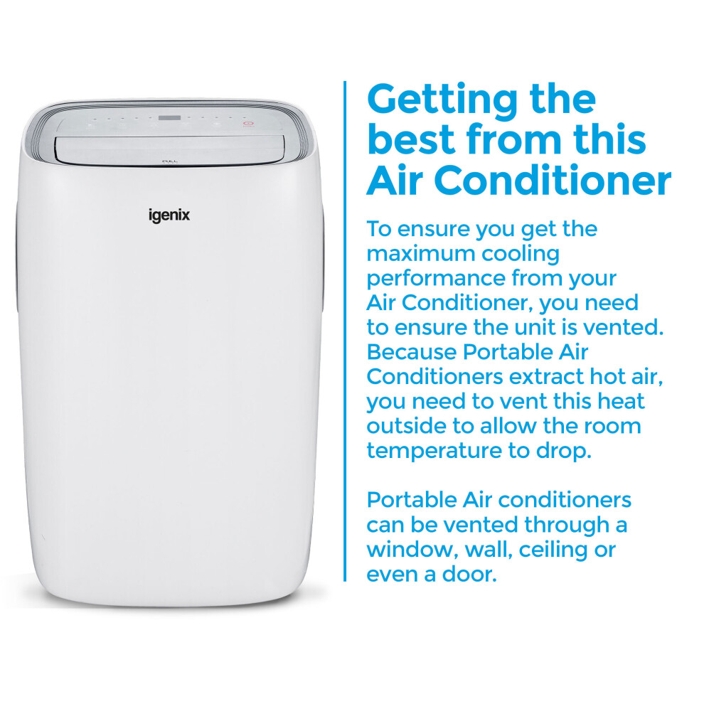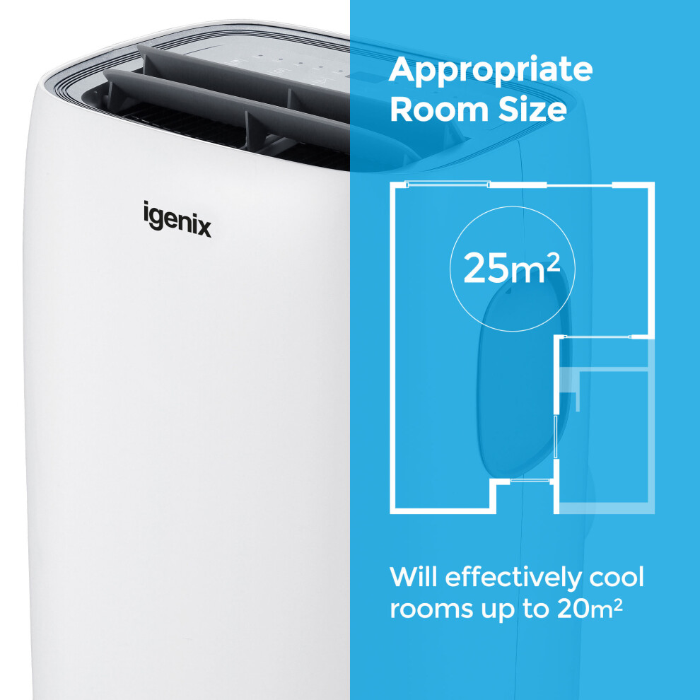 Igenix IG9922 12000 BTU 4-in-1 Portable Air Conditioner is ideal for small to average sized rooms ranging up to 25 sq. m. It expertly combines style with efficiency and can be placed unobtrusively into any room in the house, conservatory, garage, outbuilding, office, mobile home or caravan. This multifunctional unit offers individual fan, cooling and dehumidifying modes to help create the ideal environment throughout those summer months.