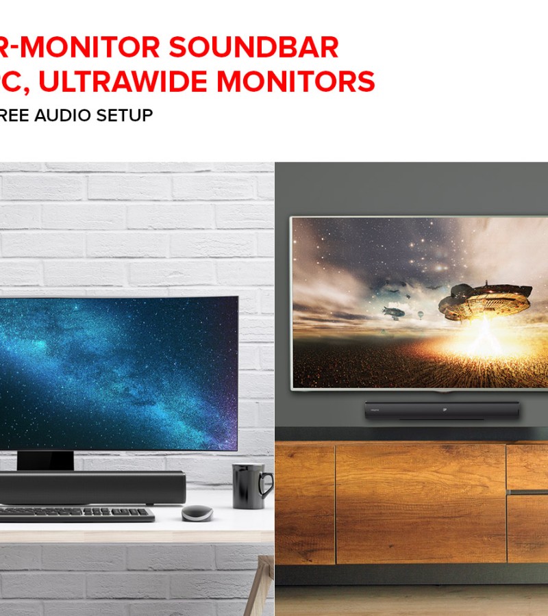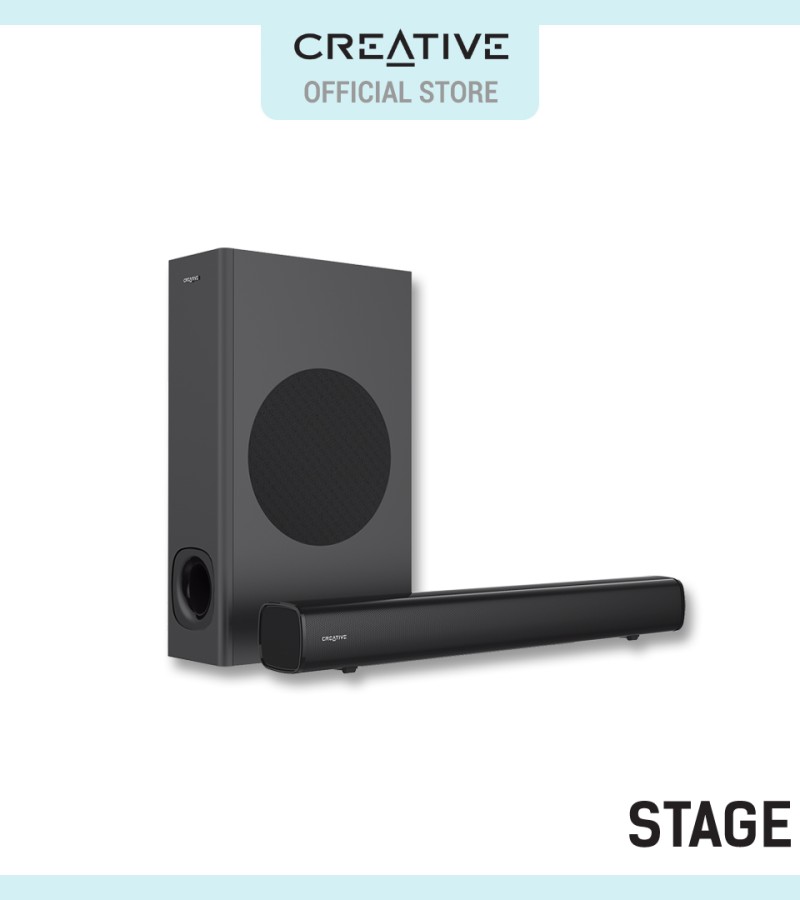 Creative Stage - 2.1 Channel Under-Monitor Soundbar with Subwoofer for TV, Computers, and Ultrawide Monitors, Bluetooth/Optical Input/TV ARC/AUX-in, Remote Control and Wall Mounting Kit